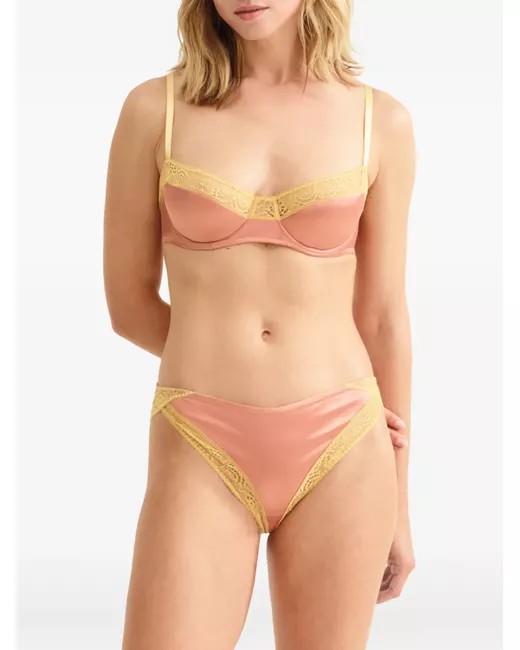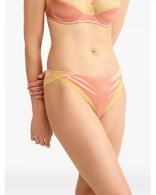 coral pink lace trim tanga style Just a reminder that this piece must be tried on over your own garments.