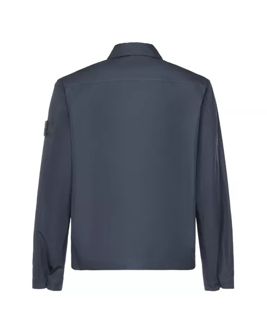 blue two-chest pockets long sleeves patch zip fastening point collar