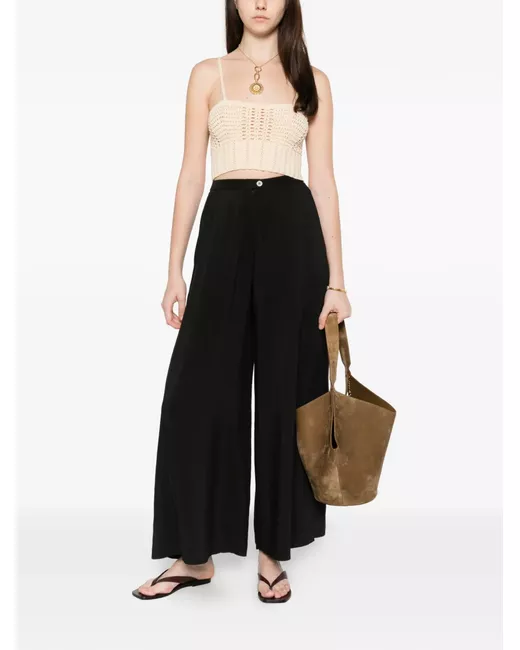 black wide leg button detail pleated front drawstring high-waisted