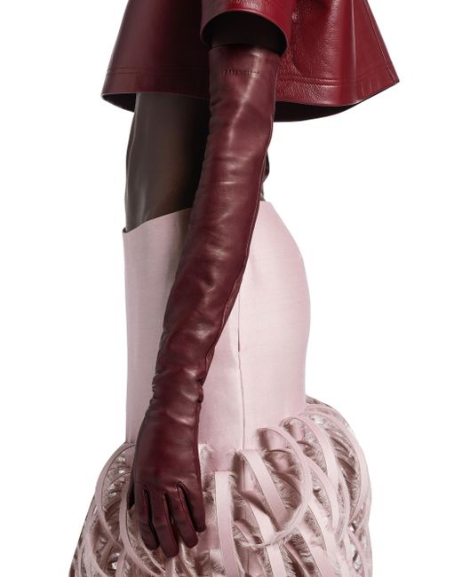 Long glove. Soft lambskin Handmade Classic, timeless long fitted gloves Balenciaga logo debossed on the edge Main material: Lambskin leather contains non-textile parts of animal origin Made in France. Lsd Handbags - Balenciaga > Balenciaga > Saks Fifth Avenue. Balenciaga. Color: Burgundy. Size: Medium.