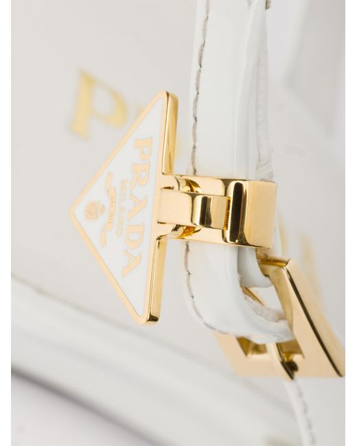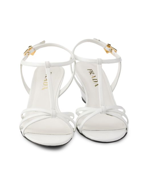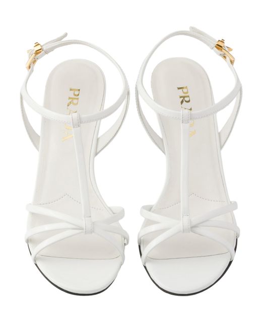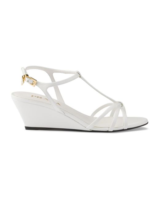 Upper with logo-engraved metal buckle Enameled metal triangle logo Leather and rubber monoblock sole with hot-stamped logo Leather-covered wedge heel, height 55 mm / 2.2'' 100% Calf Leather Imported. Lsd Rtw - Prada Rtw > Prada > Saks Fifth Avenue. Prada. Color: White. Size: 6.