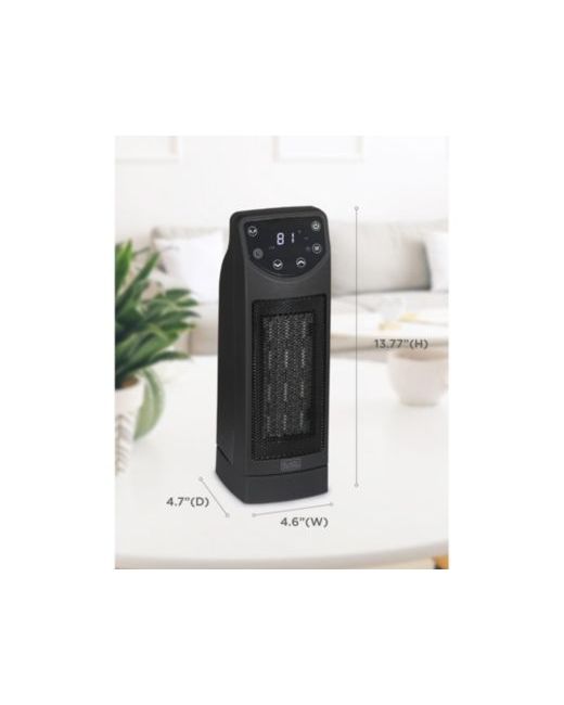 When it comes to portable heaters for indoor use and heaters indoor portable electric, this Black+Decker ceramic tower heater and fan combo is your top pick. Features on this compact desktop heater include electronic touch controls with an adjustable thermostat from 59 to 95 degrees Fahrenheit, power on indicator light, 24-hour shutoff timer and an oscillating feature that enables 70° even heating. Our space saving heater's dimensions are 4.6" x 4.7" x 13.77" and weighs a lightweight 2.7 lbs. Choose from 3 heat settings: Fan, Low Heat (1000 Watts), and High Heat (1500 Watts). This small desk heater includes a convenient remote control for ease of use. Use this space heater indoor as a bathroom heater or office heater or wherever you need warmth the most. Safety features consist of an energy saving function, 24-hour shutoff timer, overheat protection as well as a tip-over auto shutoff function.