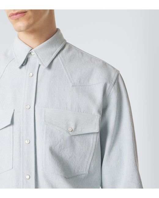 Materiale: 100% cotone. Trattamento: lavaggio in lavatrice a 30°. Made in Italy. Colore del designer: Light Blue. Contiene parti non tessili di origine animale. Collo: classico (a punta). Chiusura: chiusura frontale con bottoni a pressione. Tasche: tasche sul petto con patta. Polsini: abbottonato. Cotone.