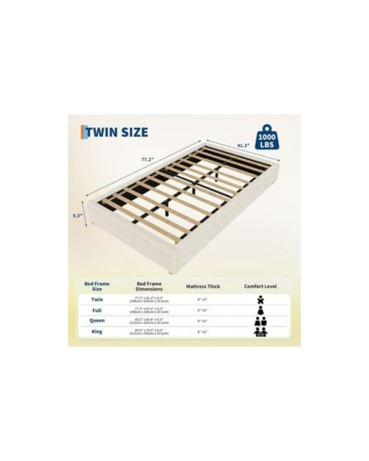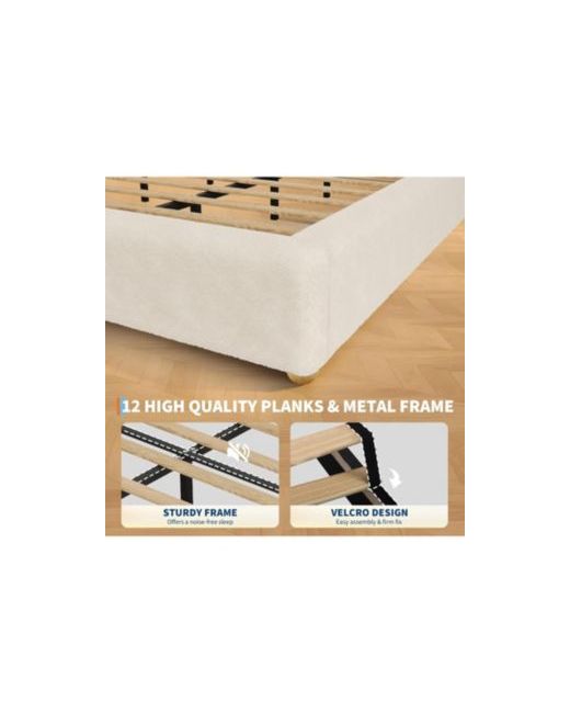 Soft Teddy Velvet Fabric: This twin size upholstered platform bed uses thickened soft fabric. It not only provides cloud-like softness and comfort but also adds a touch of refined elegance to your room. High-quality Support Materials: This bed frame uses 12 carefully crafted and polished thick wooden slats and sturdy metal for support, capable of bearing up to 1000 lbs without deforming. Elegant Solid Wood Legs: Equipped with four solid wood legs measuring 1.5"H x 2"L, perfect for those who prefer low beds. They ensure stability while adding a natural farmhouse charm. Noise-free Design: Each connecting part is secured with industrial screws, and a noise-reducing design is added to the metal crossbars. Ensuring you a peaceful night's sleep every night. Easy to Install: The package comes with a complete installation manual and installation tools. Every part and every type of screw is carefully sorted and numbered. If you have any questions,