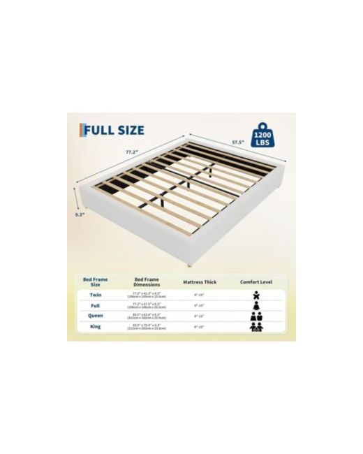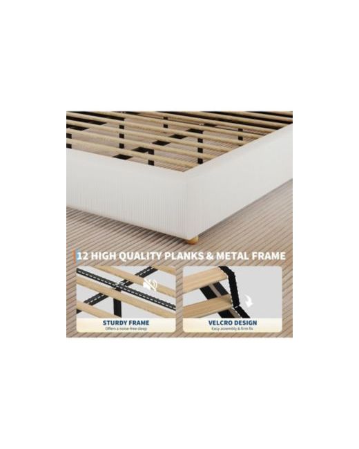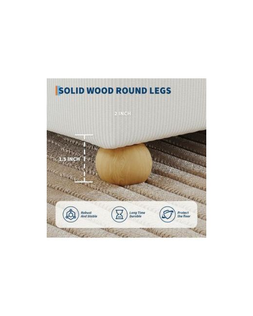 Soft Corduroy Fabric: This full size upholstered platform bed uses thickened soft fabric. It not only provides cloud-like softness and comfort but also adds a touch of refined elegance to your room. High-quality Support Materials: This bed frame uses 12 carefully crafted and polished thick wooden slats and sturdy metal for support, capable of bearing up to 1200 lbs without deforming. Elegant Solid Wood Legs: Equipped with four solid wood legs measuring 1.5"H x 2"L, perfect for those who prefer low beds. They ensure stability while adding a natural farmhouse charm. Noise-free Design: Each connecting part is secured with industrial screws, and a noise-reducing design is added to the metal crossbars. Ensuring you a peaceful night's sleep every night. Easy to Install: The package comes with a complete installation manual and installation tools. Every part and every type of screw is carefully sorted and numbered. If you have any questions, you