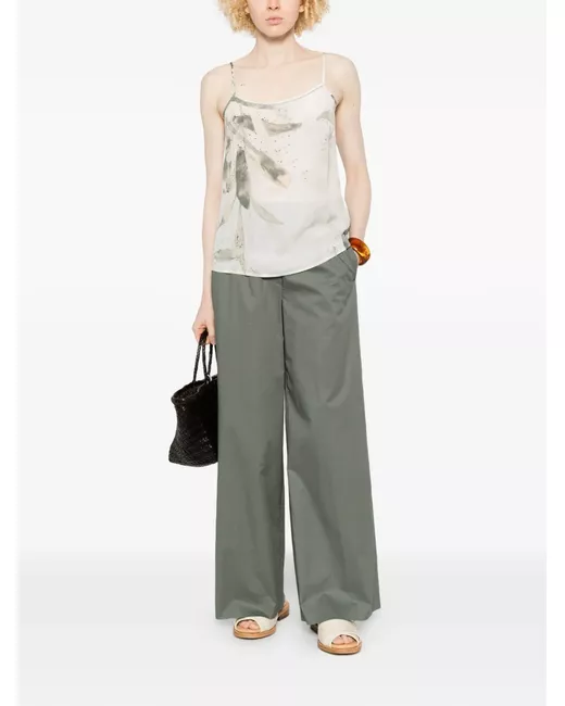 off-white leaf print spaghetti straps straight neck straight hem