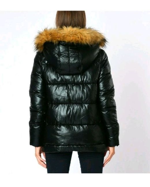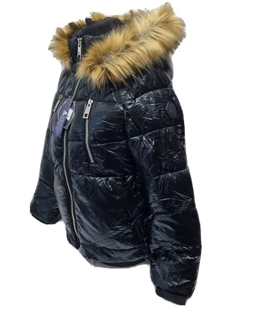 Hood with faux fur trim. Down jacket. 100% nylon. 100% polyester lining. Padded lining.