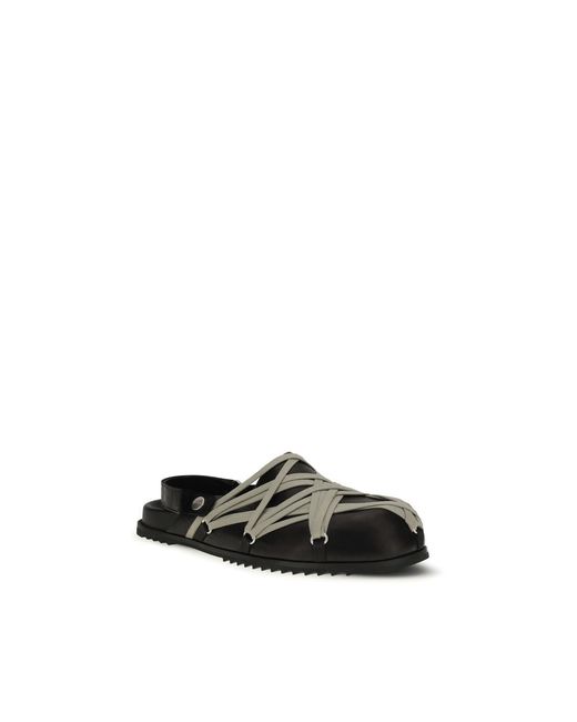 The Megalace Mules by Rick Owens are a bold interpretation of contemporary design. The leather upper, with long laces crossed on the outside, creates a “harness” effect that gives the model a distinctive look. The round toe and open back, with adjustable strap, offer comfort and a customizable fit. A unique design that combines elegance and innovation. Season: SS26 Composition: UPPER 100% Calf Leather Bos Taurus SOLE 100% Rubber