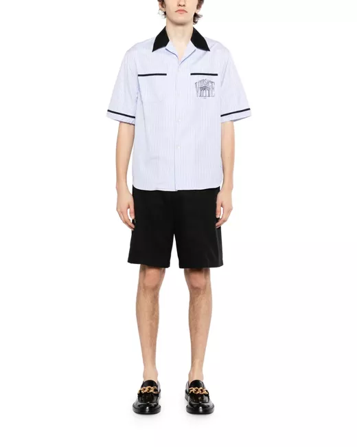 azzurro motivo a righe stampa grafica colletto a contrasto taschino sul petto maniche corte