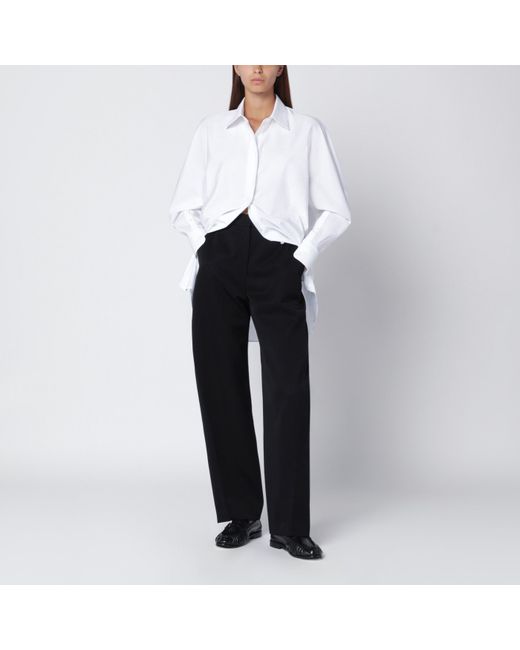 Givenchy black wool trousers featuring front zip and hook closure belt loops two side welt pockets and one back welt pocket.