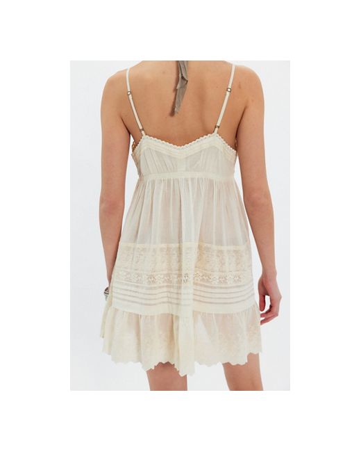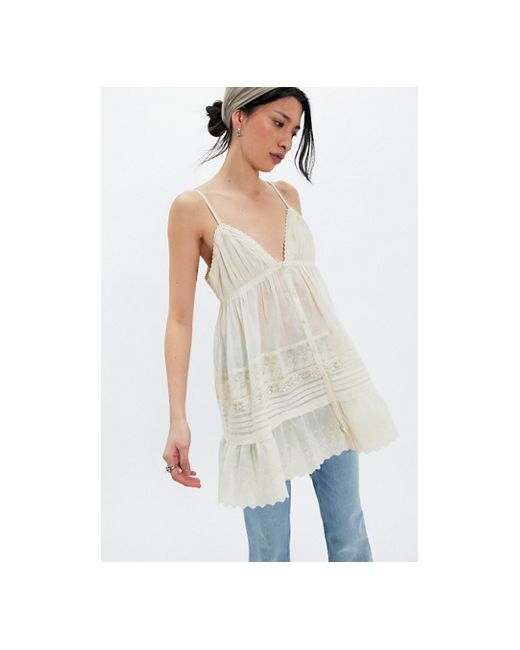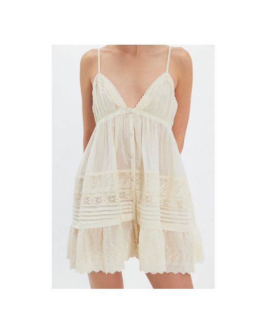 Endlessly sweet in soft, cascading cotton, this mini slip from Intimately can be worn buttoned or open, featuring a tiered empire silhouette, delicate crochet trim, embroidery details, and a picot-trimmed neckline for a style you'll wear on repeat. * Semi-sheer cotton fabrication * Mini slip with front button closure * Sweetheart neckline * Tiered crochet trim and embroidery Play Nice Mini Slip by Intimately at Free People in Ivory, Size: Small