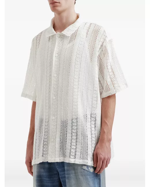 Relaxed-Fit Crochet Knit Short-Sleeve Camp Shirt Exclusive