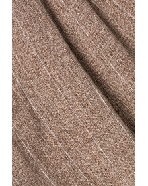 SPRING 2026 MEN'S COLLECTION The Jacob Pleated Pants in Rose. These trousers are crafted in lightweight linen with a soft stripe, featuring a relaxed leg shape and sharp front pleats that skim the silhouette. Understated yet elevated, they create a refined foundation for modern dressing. Pair it with the Lucas Breasted Jacket in Rose to complete the look. SIMKHAI Men's Jacob Pleated Pants in Rose, Linen, Size 28