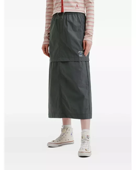 elasticated logo-patch midi skirt da Women di colore Grigio