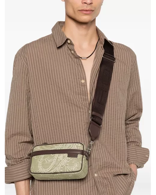 pale green paisley jacquard zip closure calf leather trim shoulder strap