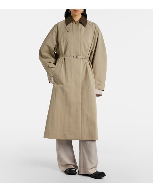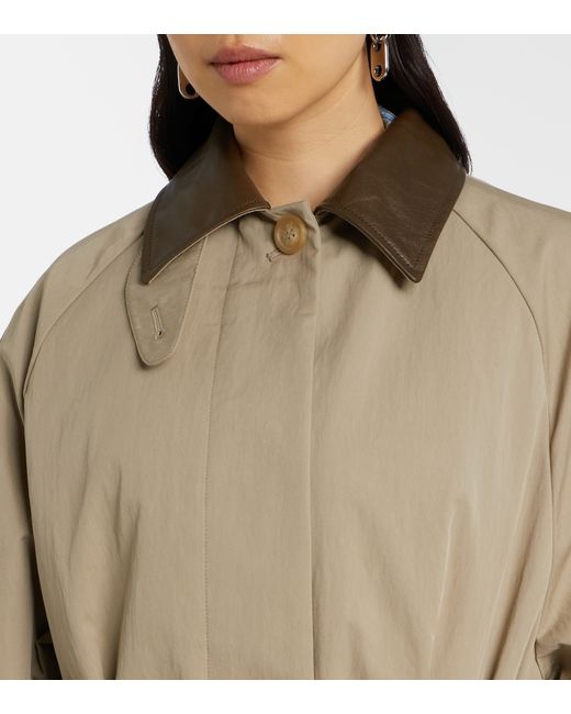 Materiale: 58% cotone, 42% nylon. Trattamento: lavaggio a secco. Made in Romania. Colore del designer: Khaki Grey. Decorazione: 100% pelle bovina. Contiene parti non tessili di origine animale. Fodera: 100% viscosa. Chiusura: abbottonatura frontale nascosta. Tasche: tasche a filetto, tasca interna. Cintura integrata. Spacco: singolo. Cotone.