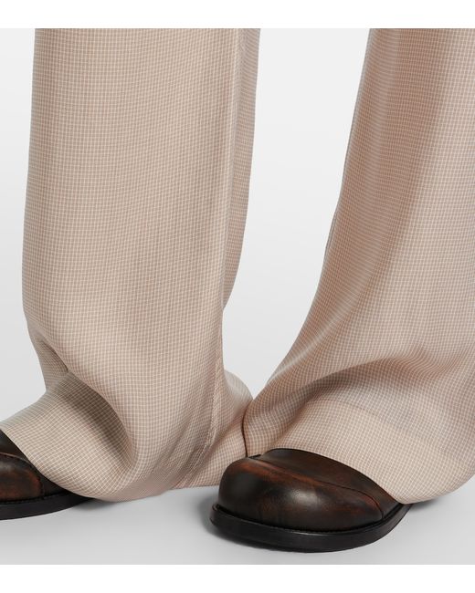 Material: 100% cupro. Care instructions: dry clean. Made in China. Designer color name: Beige Multi. Lining: 100% cupro. Contains non-textile parts of animal origin. Closure: zip and button fastening. Belt loops. Pockets: five pockets.