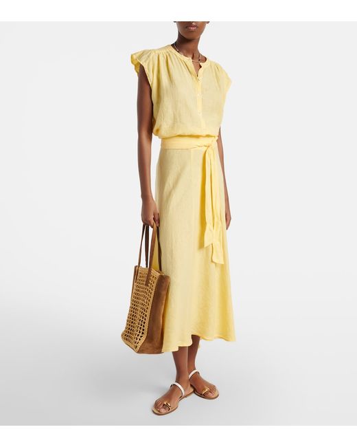 Materiale: 100% lino. Trattamento: lavaggio in acqua fredda. Made in USA. Colore del designer: Lemondrop. Chiusura: abbottonatura frontale. Lino.