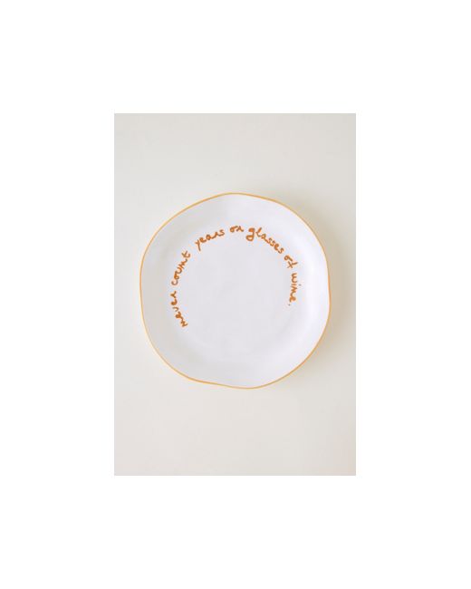 Crafted from stoneware with a charming organic shape, these plates are adorned with playful slogans, bringing fun to your crockery collection. Statement Plate by Maegen in Orange at Anthropologie