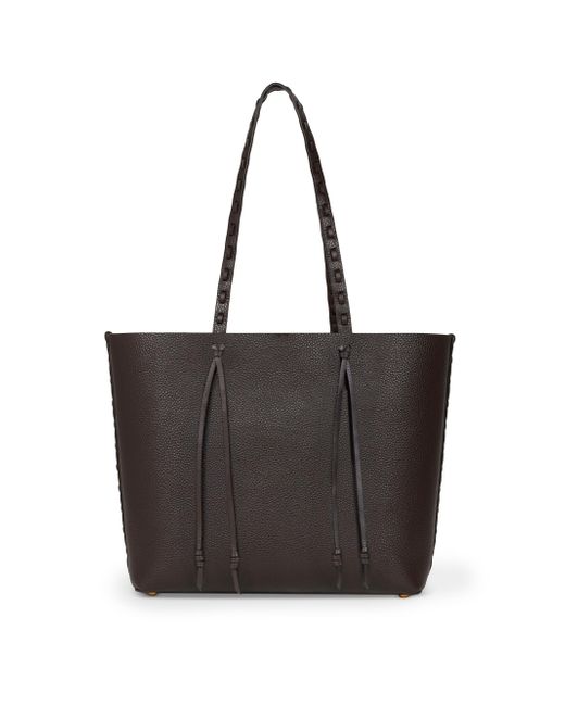 Crafted of pebble leather, this Essential shopping bag from Etro features woven smooth leather detailing at the shoulder straps and seams. Beaded accents detail the side straps for a bohemian finish. Shoulder straps Interior: removable zip pouch Open compartment Top toggle closure Leather Leather lining Made in Italy SIZE About 13"W x 11"H 5.5"D ABOUT THE BRAND The Italian fashion house renowned for its eclectic prints and signature paisley motif has been a family-run business since its inception in 1968. Creative Director Marco de Vincenzo continues the brand's legacy with the rich textiles and patterns still used in its clothing, accessories and home décor. Handbags - Italian Designer Handbag > Etro > Saks Fifth Avenue. Etro. Color: Terra Di Siena.