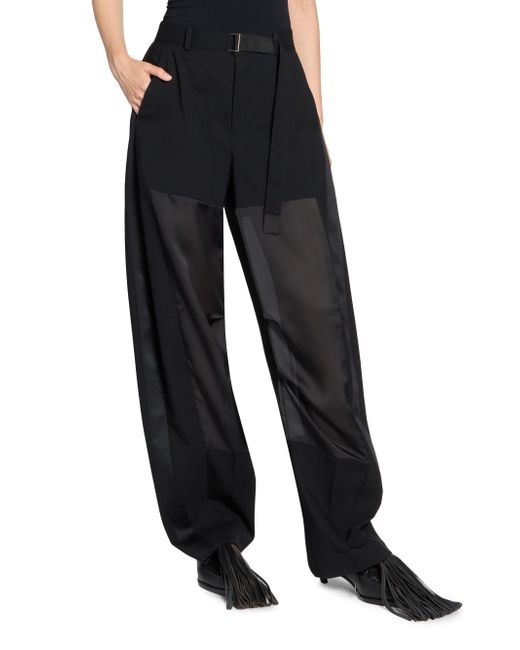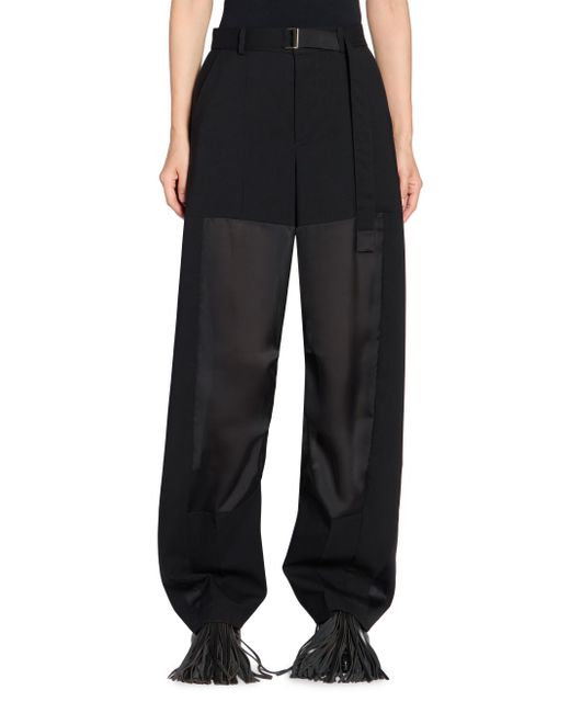 Crafted of Japanese wool suiting, Sacai's pleat-front pants feature side slip and back button-through welt pockets. Banded waist, belt loops Side slip pockets Back button-through welt pockets Zip fly, button closure 100% wool Trim: 100% polyester Lining: 100% cupro Dry clean Made in Japan SIZE & FIT Model measurements: 5'10" tall Model is wearing a US size 4. Advanced Designer - Sacai > Sacai > Saks Fifth Avenue. Sacai. Color: Black. Size: Small.