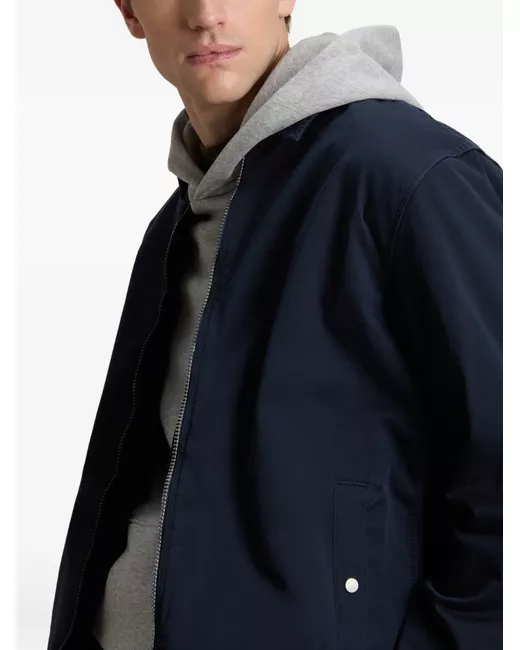 navy blue shirt collar two-way zip fastening side pockets adjustable cuffs