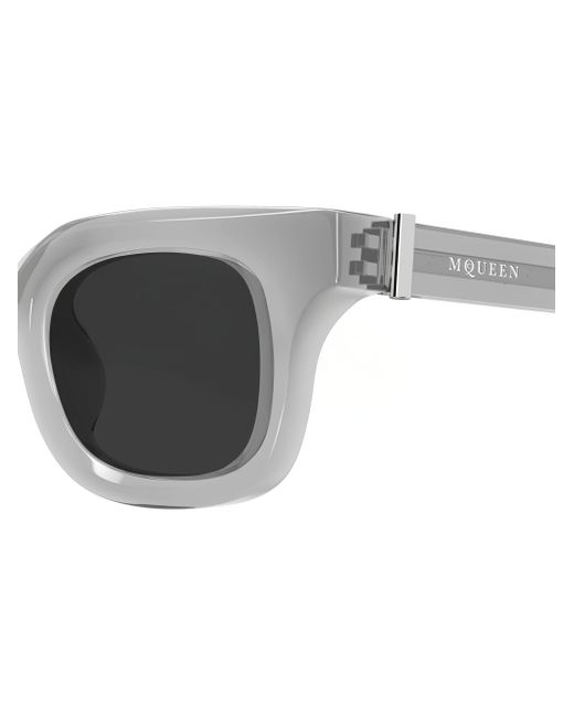From the Skull Hardware Collection. These McQueen sunglasses feature a bold square silhouette. The design is embellished with a metal cross-bar at the hinges and a 3D skull detail on the endpieces, with the label's logo laser-engraved at the temples. Made with recycled acetate 100% UV protection Solid lenses Includes case and cleaning cloth Recycled acetate, exclusie of trim Made in Japan SIZE 46mm lens width 23mm bridge width 150mm temple length ABOUT THE BRAND Visionary designer Lee Alexander McQueen launched his brand in 1992, which quickly became synonymous with cutting-edge, avant-garde design. Creative Director Seán McGirr has continued the designer's legacy, bringing precision craftsmanship and a feminine vision to the label's signature edge. Soft Accessories - Mens Sunglasses > Mcqueen > Saks Fifth Avenue. McQueen. Color: Grey Black.