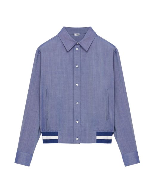 Crafted of a wool blend in Italy, this LOEWE jacket is styled with a striped elasticized waistband, a shirt collar, and side vertical welt pockets. Shirt collar Drop shoulders Long sleeves, button barrel cuffs Side vertical welt pockets Elasticized waistband Button-front closure 90% wool/5.53%viscose/3% polyester/1.26%nylon/0.21%elastane Dry clean Made in Italy SIZE & FIT Model measurements: 6'2" tall, 40" chest, 31" waist Model is wearing a US size 40R ABOUT THE BRAND For over 179 years, LOEWE has been synonymous with classic luxury and expertise in fine leather and tailoring. The Spanish house's latest chapter hones in on redefining the craft through an intellectual-yet-playful approach to fashion thanks to the modern eyes of design duo Jack McCollough and Lazaro Hernandez. The line's bold and vibrant take on the Spanish lifestyle is infused in its effortlessly chic handbags, shoes, ready-to-wear and accessories for women and men. Men Advcd Dsgnr - Mens Advanced Drtw > Loewe > Saks Fifth Avenue. LOEWE. Color: Blue. Size: 38.