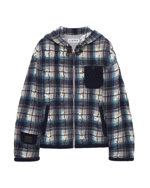 This jacket from LOEWE showcases a plaid with a knitted chest patch pocket and trim. A drawcord hood lends added comfort to this layer. Drawcord hood Long sleeves Chest button-through patch pocket Side slant pockets Front zip closure 44.18% wool/28.54% linen/11.56% viscose/10% cotton/2.40% leather/1.72% nylon/0.80% polyester/0.76%cashmere/0.04%elastane Dry clean Made in Italy SIZE & FIT Model measurements: 6'2" tall, 40" chest, 31" waist Model is wearing a US size 40R ABOUT THE BRAND For over 179 years, LOEWE has been synonymous with classic luxury and expertise in fine leather and tailoring. The Spanish house's latest chapter hones in on redefining the craft through an intellectual-yet-playful approach to fashion thanks to the modern eyes of design duo Jack McCollough and Lazaro Hernandez. The line's bold and vibrant take on the Spanish lifestyle is infused in its effortlessly chic handbags, shoes, ready-to-wear and accessories for women and men. Men Advcd Dsgnr - Mens Advanced Drtw > Loewe > Saks Fifth Avenue. LOEWE. Color: Navy White. Size: 38.
