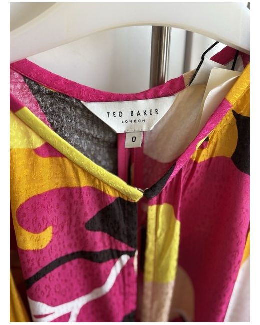 This Ted Baker Women's Jumpsuit in a tall size 0/UK6 is a stylish and versatile option for any party or cocktail occasion. The sleeveless design with a round neck, strappy sleeves and built in belt offers a flattering silhouette, while the wide-leg style adds a touch of elegance. Made from 100% viscose and with two pockets, this multicoloured jumpsuit is practical and is sure to make a statement with its one-piece construction and sophisticated look. The Ted Baker brand ensures quality and style, making this jumpsuit a must-have for any fashion-conscious woman.