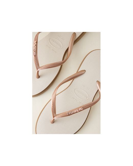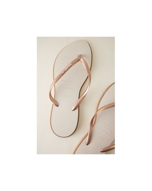 By Havaianas PVC strap; Zamak logo Rubber outsole Toe post Pointed toe Imported Slim Point Flip Flops by Havaianas in Pink, Women's Size: 35/36, Rubber at Anthropologie