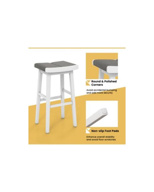 Featuring a saddle seat and footrest design, our set of 4 kitchen stools offers a comfortable spot for relaxation after a long day of work or study. The timeless color and sleek lines of these stools make them a versatile addition to any room decor. Whether placed in your kitchen, home bar, dining room, or other indoor spaces, these stools effortlessly blend in. Each bar chair is supported by four rubber wood legs, ensuring stability and durability. With a weight capacity of 330 lbs, these stools are built to withstand everyday use. Furthermore, the backless design allows for easy storage, as you can conveniently tuck them away under any counter or dining table.Features:Curved saddle seat filled with soft sponge for comfortable and ergonomic seatingCrafted with premium linen fabric and rubber wood material for long-lasting usageNon-slip foot pads provide added stability and prevent floor damage