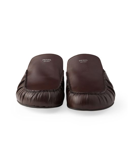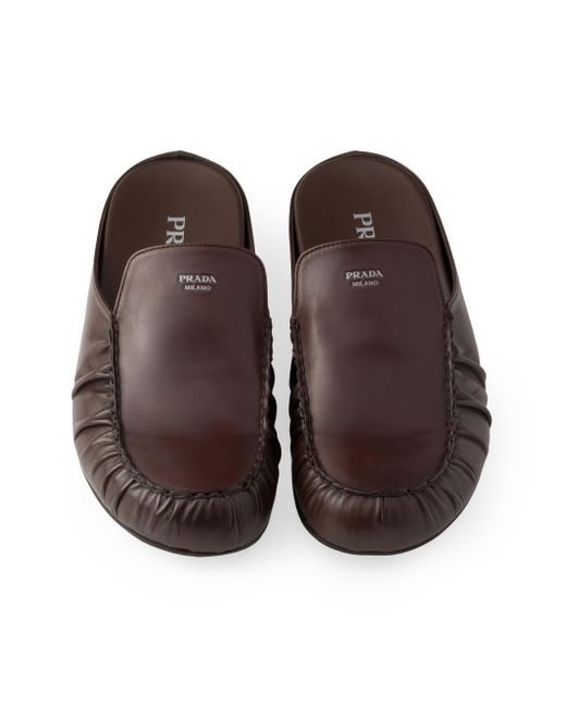Leather lining Upper with gathered apron Rubber sole Hot-stamped logo on the apron and insole Leather-covered insole 100% Calf Leather Imported. Lsd Rtw - Prada Rtw > Prada > Saks Fifth Avenue. Prada. Color: Brown. Size: 7.