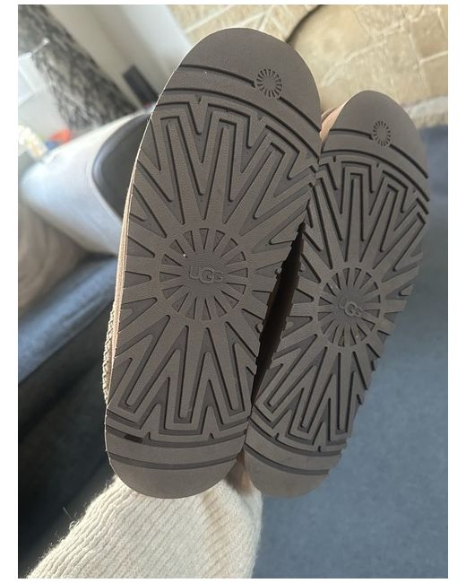 The UGG Australia Women's Tazzman Size 7 in Rocky oak is a stylish slip-on slipper, perfect for casual occasions during the winter season. Made from suede with a round toe shape and low heel height, these brown slippers feature the iconic UGG Australia logo as accents. The slip-on style and standard shoe width make them comfortable and easy to wear, ideal for everyday use at home or as a fashionable choice for indoor wear. Worn once for a couple of hours but they are far too big for me. They come in original box and can clearly see QR code.