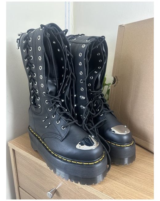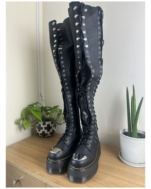 Dr Martens 28-eye xtrm max leather boots UK 5 | EU 38 | US L 7 ✨Soft black Virginia leather ✨over knee, 24 eyelet lace up ✨Lace ups on front and outside of boot ✨metal toe plate and barbell detailing ✨Max quad sole! 2.2” ✨Side zips for quick fastening, these come up to the knees Brand new and never worn in the box. Box and packaging is a little damaged/worn. Also should point out that these need to be folded to fit in their box Rest assured, these are genuine Dr. Martens 💌 FREE UK POSTAGE 💌 Please refer to the photos for further details on condition if needed as they form part of the description. I don’t offer returns/refunds. I can provide more photos on request!