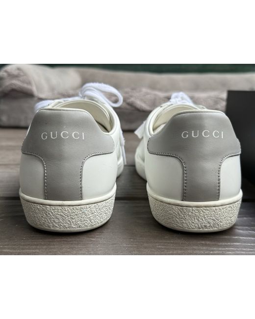 These Gucci trainers in UK size 8 are a stylish and casual option for women. Made with leather lining and a rubber outsole, they feature a lace-up closure and standard shoe width. The white sneakers are perfect for the spring season, these have only been worn a handful of times as you can see they have a couple of small marks.