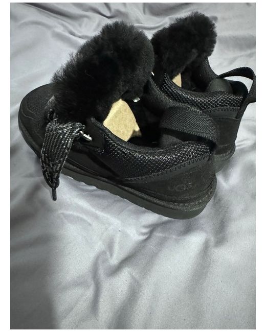 The UGG Lowmel Black trainers are a stylish and comfortable choice for women. Made with a sheepskin lining and suede upper, they feature a lace-up closure and a rubber outsole for durability. With a sleek black colour and signature UGG logo accents, these sneakers are perfect for casual occasions during the winter season. The rubber cleat type offers additional traction, making them suitable for various activities like boxing. The standard shoe width ensures a comfortable fit, while the classic Ugg product line guarantees quality and style. Perfect for adding a touch of luxury to your shoe collection.