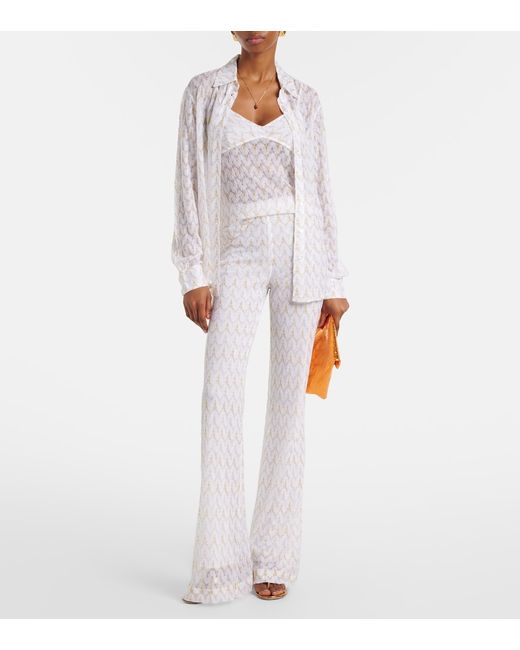 Materiale: 96% viscosa, 4% filato metallizzato. Trattamento: lavaggio a mano. Made in Italy. Colore del designer: White and Gold. Fodera: 77% poliammide, 23% viscosa.