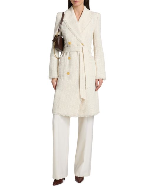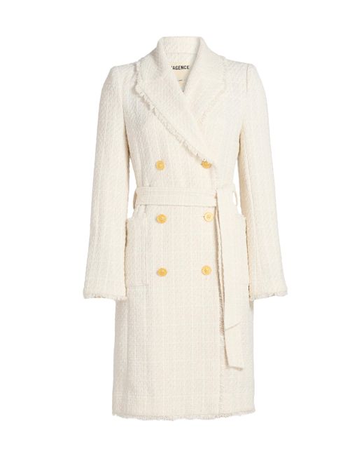 L'AGENCE's Cooper tweed coat is crafted of a cotton blend, showcasing a chic, unlined design. This piece features a fringe trim, notch lapels, and a double-breasted design. Notched lapels Long sleeves Self-tie belt Side patch pockets Double-breasted button closure 55% cotton/45% polyester Dry clean Imported SIZE & FIT About 40.25" from shoulder to hem Model measurements: 5'10" tall Model is wearing a US size 4 ABOUT THE BRAND Founded in 2008, L'Agence marries Southern California ease with chic Parisian style. Using luxurious fabrics, the Los Angeles-based label delivers feminine collections that are both timeless and versatile. In 2015, the label launched a denim line in a range of sleek, impeccably tailored cuts. Contemporary Sportswear - Workshop > L'agence > Saks Fifth Avenue. L'AGENCE. Color: Vintage White. Size: 6.
