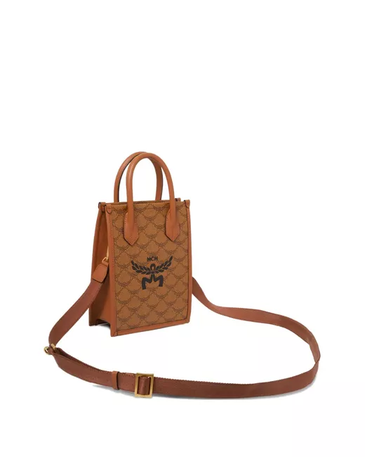 marrone cognac chiusura magnetica nascosta due manici tondi tracolla regolabile e rimovibile motivo con monogramma