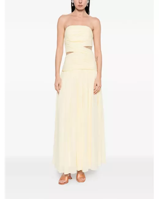 Strapless Cutout Embellished Gathered Velvet Maxi Dress