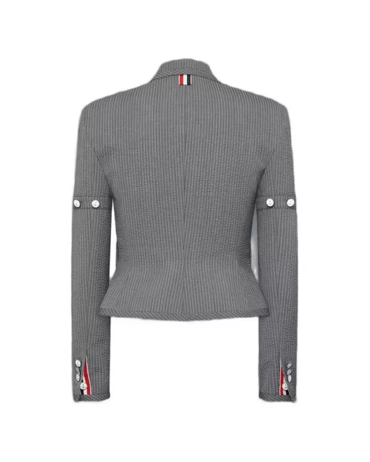 grigio chiaro seersucker revers classici chiusura a bottoni design crop tasche ad aletta