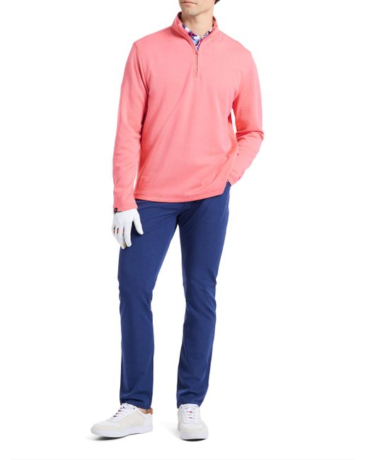 The Troland quarter-zip pullover from Robert Graham is crafted of a cotton-blend performance fabric, featuring a mock turtleneck and signature RG detail at the side. Mock turtleneck Long sleeves Front zip closure 62% cotton/38% polyester Machine wash Imported SIZE & FIT Model measurements: 6'2" tall, 40" chest, 31" waist Model is wearing a US size Medium. Mens Modern Coll & Outer - Contemp Classic Collecti > Robert Graham > Saks Fifth Avenue. Robert Graham. Color: Pink Lemonade. Size: Small.
