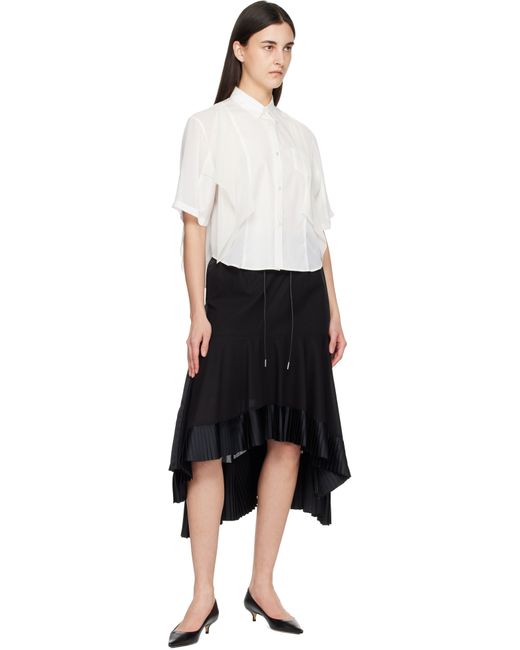 Cotton poplin and georgette shirt. · Layered and panelled construction · Spread collar · Button closure · Patch pocket at chest Supplier color: White