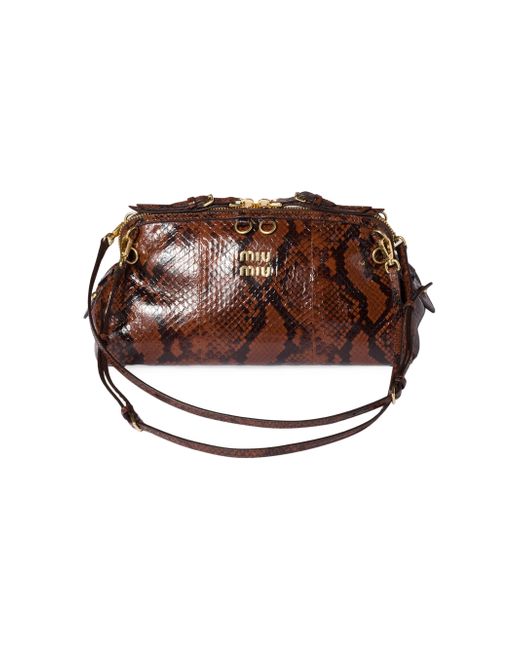 Double sliding, removable Ayers leather shoulder straps Gold-tone hardware Zipper closure Nappa leather interior with double zipper pocket Metal lettering logo on the front Can be worn three ways: on the shoulder, by hand after removing the straps, or crossbody by joining both straps to form a longer one Imported 100% Homalopsis Buccata (Leather) 28 cm W x 14.5 cm H x 10 cm L / 11'' W x 5.7'' H x 3.9'' L. Lsd Handbags - Miu Miu > Miu Miu > Saks Fifth Avenue. Miu Miu. Color: Brown.