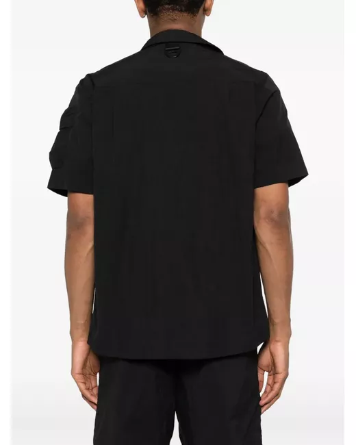 black chest pocket zip detail buttoned placket short sleeves tonal stitching