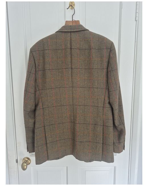 This Hackett Checked Tweed Brown Herringbone Blazer in size 40R is a stylish and versatile addition to any man's wardrobe. Made from wool with a tweed fabric type, this blazer features a button closure and a regular fit. Suitable for casual occasions, it is designed for walking activities and should be dry cleaned only. The brown colour adds a touch of sophistication, while the brand's reputation ensures quality and style. Perfect for adding a smart edge to any outfit, this blazer is sure to become a go-to piece for any man looking to elevate their style.