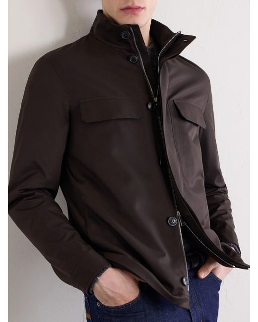 ZEGNA applies tailoring precision to this casual jacket. Made from structured shell, it’s detailed with two chest pockets that lend subtle function while maintaining a neat, refined silhouette.