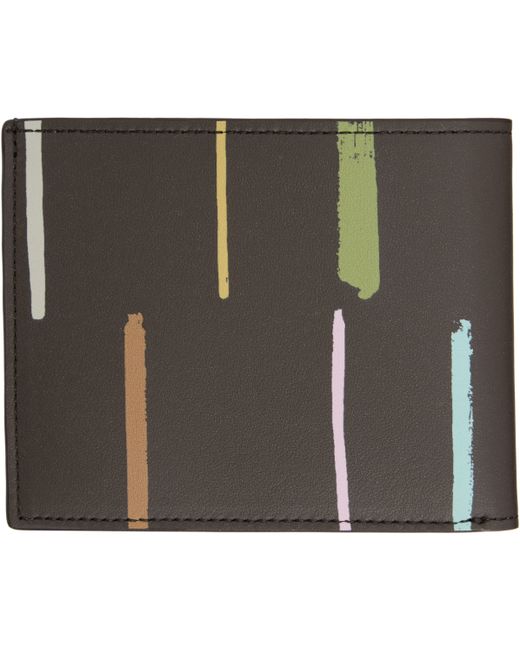 Buffed leather bifold wallet. · Stripes throughout · Logo embossed at face · Six card slots · Two patch pockets · One note slot · H3.25 x W4 x D0.5 Supplier color: Brown