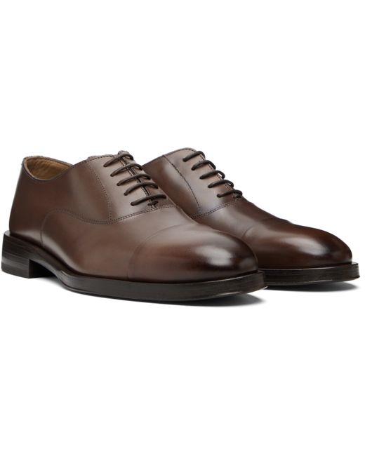 Buffed leather derbys. · Lace-up closure · Striped logo flag at heel collar · Buffed leather lining · Stacked block heel with rubber injection · Treaded leather sole Supplier color: Brown